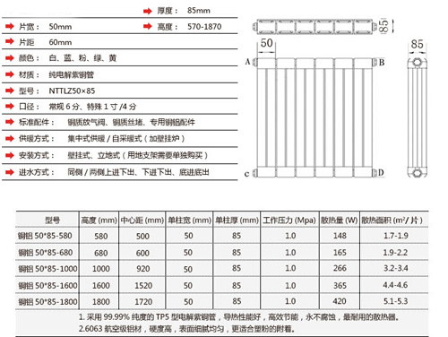 銅鋁復(fù)合50x85散熱器